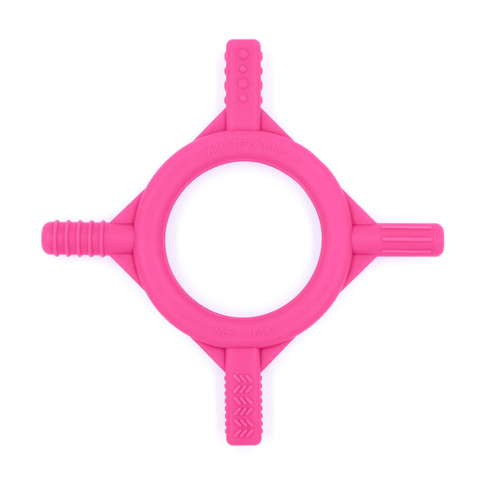 ARK's Baby Tetra-Bite® is designed to calm and soothe infants who are in the early stages of development.  At approximately 5-6 months of age, babies start mouthing and chewing in order to strengthen their mouth muscles and exercise their lips, tongue, and jaw. This oral exploration prepares them to eat solid foods and to make speech sounds later on.  The Baby Tetra-Bite™ provides a safe outlet for babies to develop these skills.