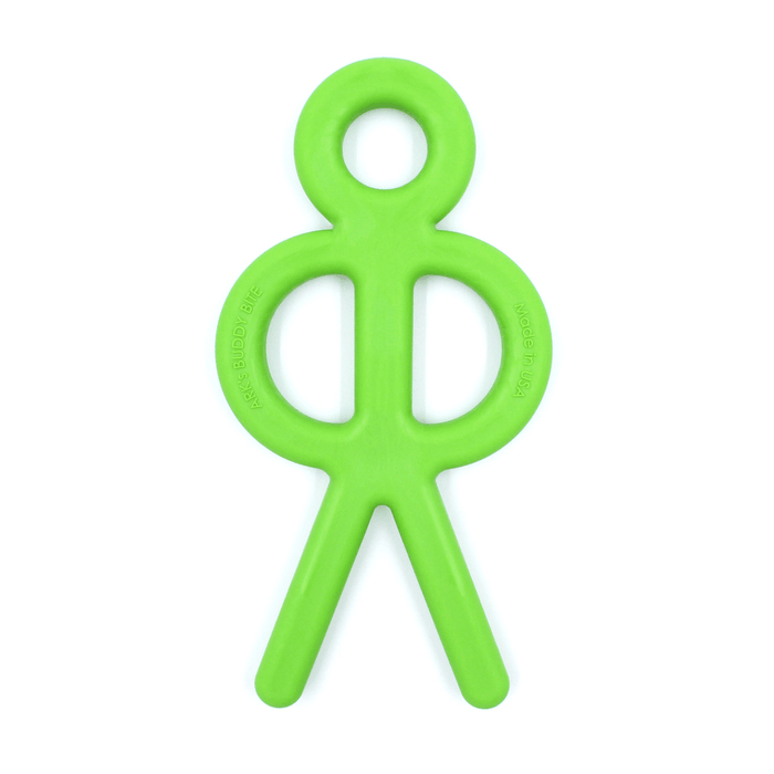 ARK's Buddy Bite™ Chewable Stick Figure is a fun and friendly way to chew. The extensions are long enough to reach the back molars where we usually chew the most and for proprioceptive input to the masseter muscle. The loops are firmer and provide more resistance for chewing on both sides of the mouth at the same time.