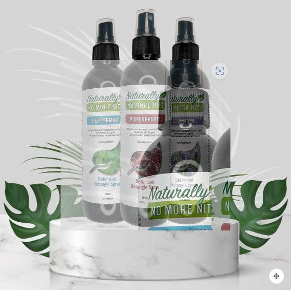 Naturally No More Nits Deter and Detangle Sprays can also be used after showering and/or swimming. Make sure the hairline, crown, nape of neck and behind the ears is thoroughly sprayed as well as the entire length of the hair. School hats, hoodies, fabric hair ties and head bands can also be sprayed for added protection.