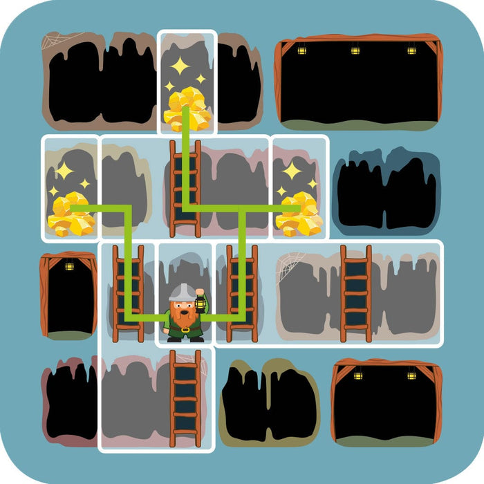 Can you help the dwarf find the gold? Place all 3 "ladder" puzzle pieces on the gameboard so the dwarf can go up and down and reach the treasure. "Goldmine" is a magnetic travel game with 48 challenges, from easy to expert. Ages 7+